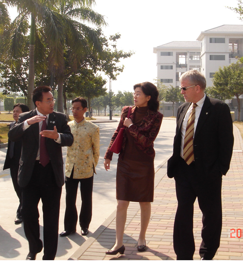 12月2日,加拿大皇家大学校长Allan R Cahoon博士、常务副校长Stephen L Grundy、该校亚洲区运营总监黄树峰等一行三人到南国商学院进行参观访问。我校副校长、南国商学院院长顾也力亲切会见了加拿大客人并陪同他们参观校园。
