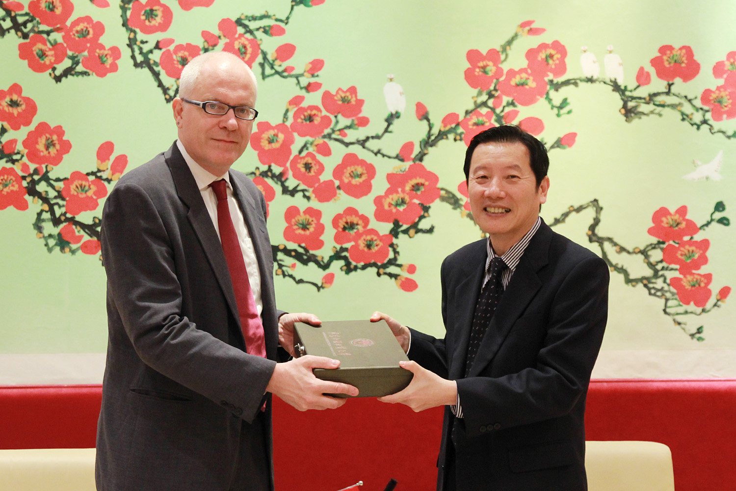 加拿大研究中心研究员程永林代表中心向麦道伟介绍了加拿大研究中心的发展情况、研究领域以及研究方向。此外,他表示,中心盼望与更多加拿大的大学加强合作。