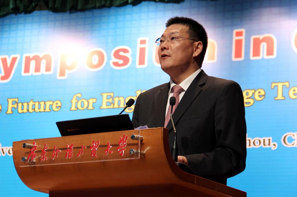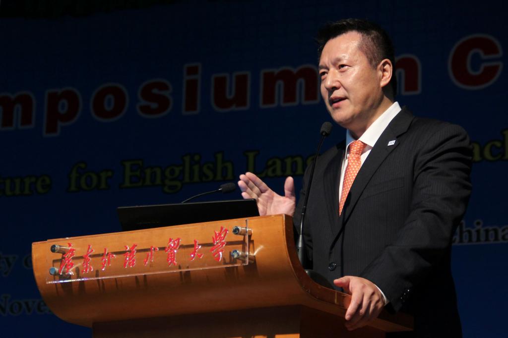 Jun Liu就“世界英语教学未来发展的战略思考”的议题展开演讲