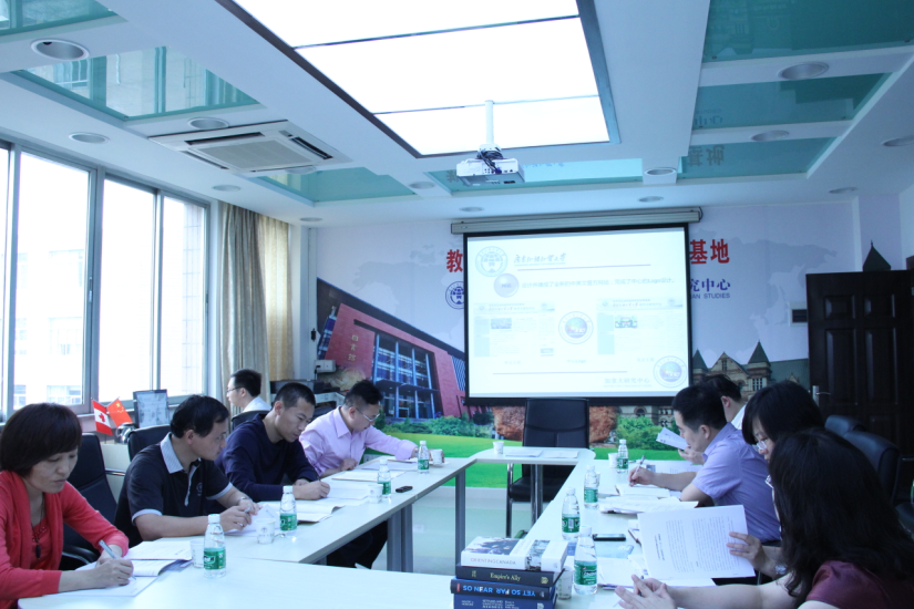唐小松首先代表加拿大研究中心欢迎调研小组的莅临和长期以来对中心工作的支持和帮助,并向调研小组做工作汇报。他从科研平台建设、科研事业发展、学术活动、对外合作交流四个方面,系统而全面地总结了加拿大研究中心自成立以来所达成的各项建设和正在开展的工作。同时,他以轻松、幽默的话语,流露了在基地建设过程中,中心工作人员所历经的艰辛和付出的辛劳。同时,他对中心发展所面临的高端人才缺口及核心科研团队成员的不足表示了担忧,并希望学校及科研处,能在引进人才方面给予中心更多支持和帮助。