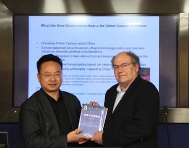 唐小松教授代表加拿大研究中心向Gary赠送蓝皮书《加拿大发展报告2014》和《加拿大发展报告2015》,并邀请Gary到中心开展学术研究,参与蓝皮书写作,为师生以及研究人员带来更多的最新的学术科研信息以及宝贵的学术研究资料。