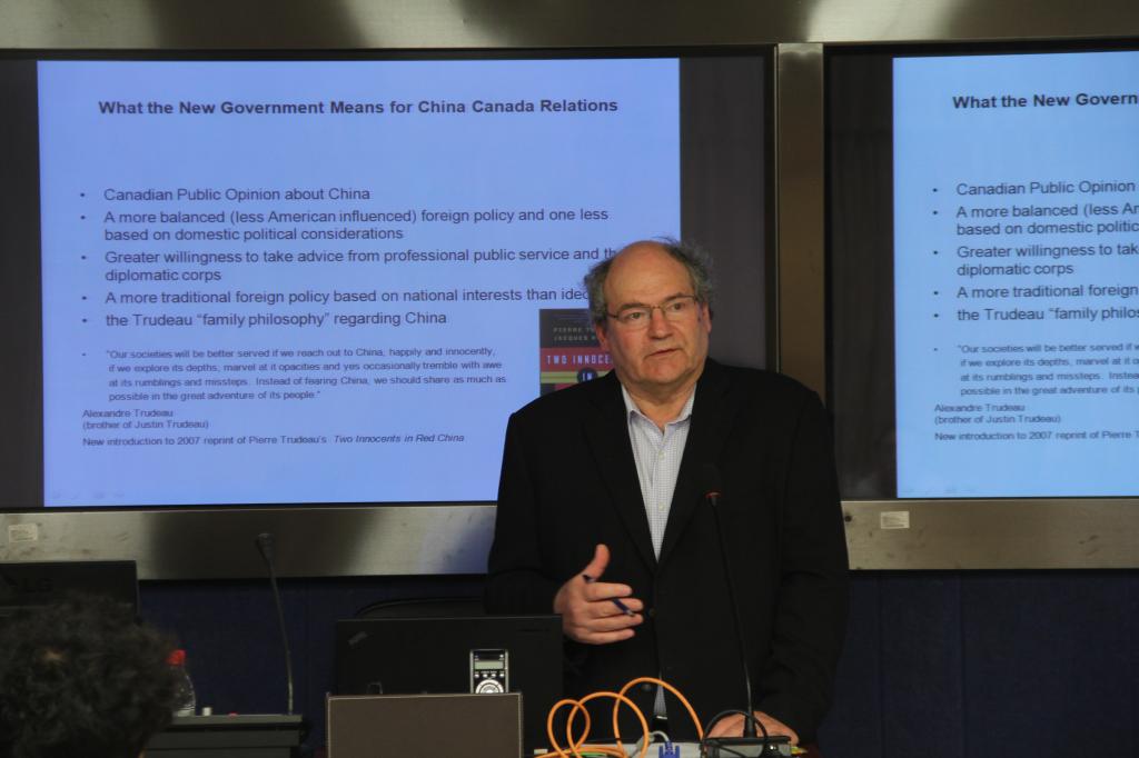 2015年12月10日,应广外加拿大研究中心邀请,加拿大卡尔来顿大学研究员、中加友好协会渥太华分会会长GaryLevy博士专程访问加拿大研究中心,在学校同传室举办学术沙龙,作了题为“2015年加拿大大选及其对中加关系的影响”的发言。沙龙由加拿大研究中心主任唐小松教授主持,加拿大研究方向研究生和高翻学院同传证书班学员共同参与,既拓展了专业知识,又提高了外语技能,是跨专业合作的一种新尝试。华南师范大学政治与行政学院的万晓宏教授作为特邀嘉宾出席了本次讲座。