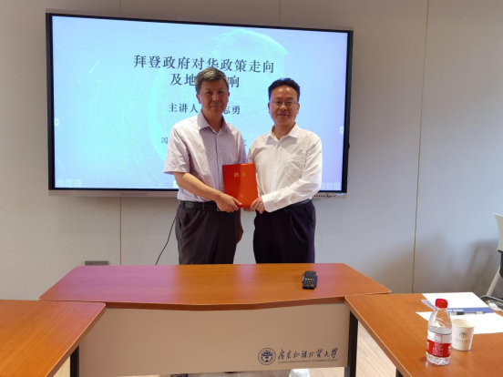 讲座结束后,唐小松教授聘请胡志勇研究员为我校国别和区域高等研究院和中心客座研究员,并向其颁发聘书。