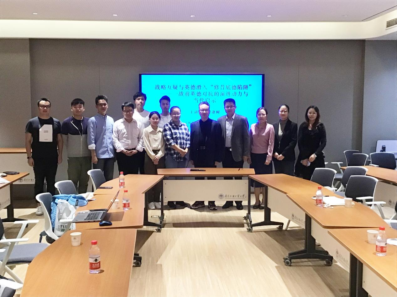11月16日周二下午15:00,我校国别与区域高等研究院、加拿大研究中心邀请到南京国际关系学院战略与安全研究所副所长、教授,南京大学亚太发展研究中心研究员,博士生导师崔建树为师生做“战略互疑与英德滑入’修昔底德陷阱’——一战前英德对抗的演进动力与当代启示”的专题讲座,中心主任唐小松教授主持了本次讲座。