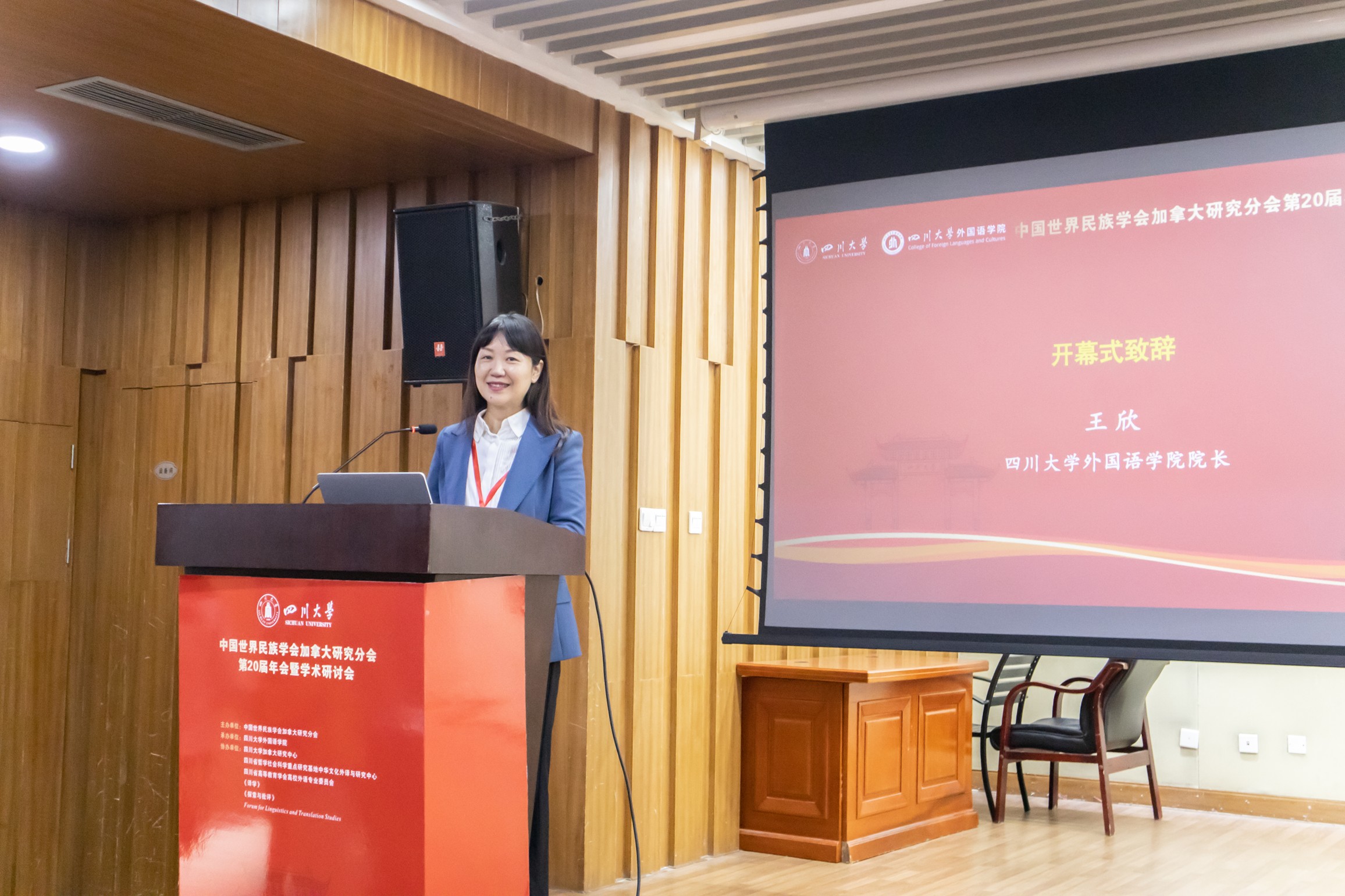 大会开幕式由四川大学外国语学院苏德华副教授主持。四川大学外国语学院院长王欣教授在开幕式上致辞。她表示,本次以“新时代背景下的中国加拿大研究”为主题的学术研讨会备受瞩目,可以为学院加拿大研究与外语学科建设提供宝贵的经验与交流机会。她代表学院欢迎与会的专家学者及研究生们,希望大家能够深入交流、共同探讨,书写加拿大研究的新篇章。