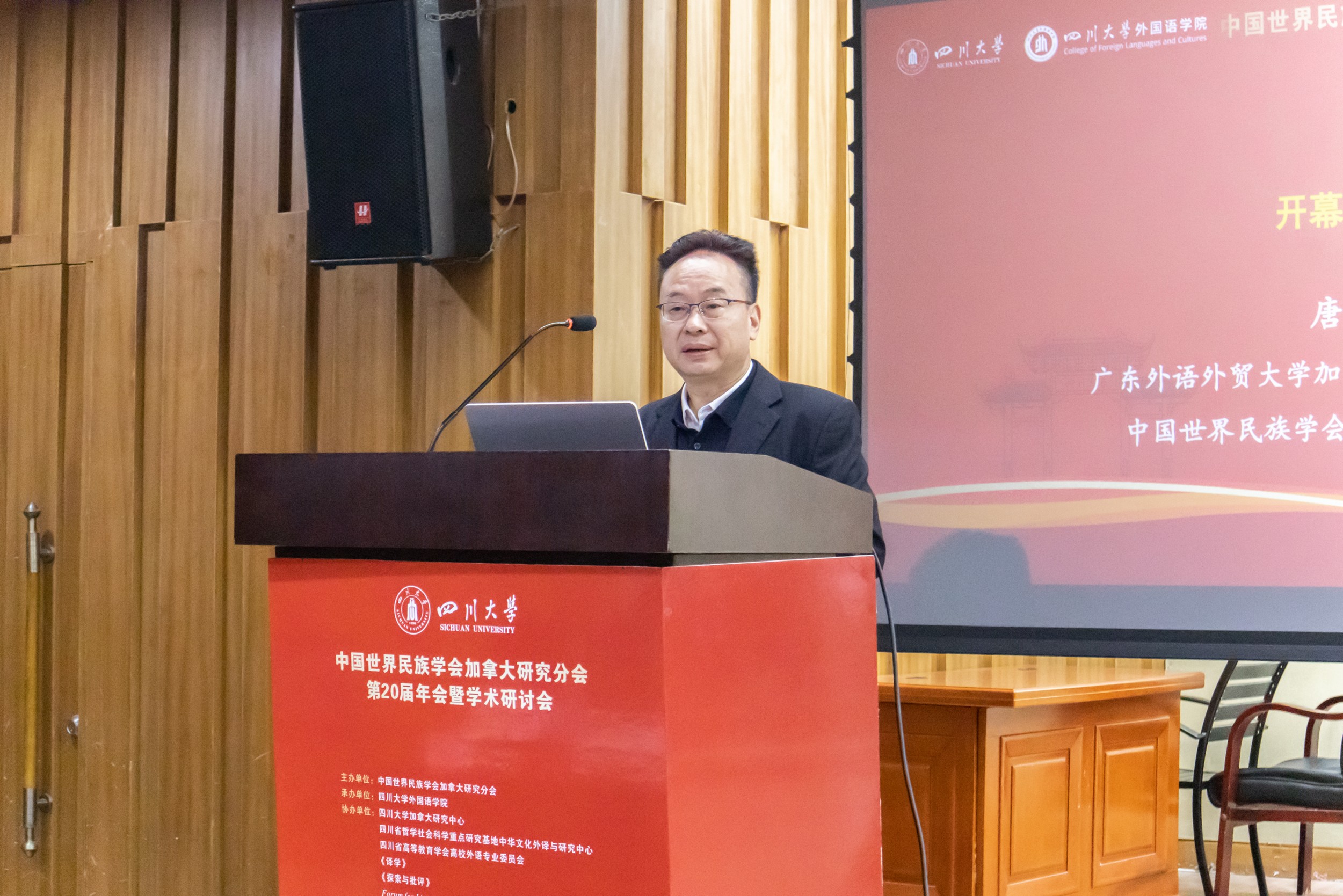 中国世界民族学会加拿大研究分会会长唐小松教授在致辞中对四川大学外国语学院会务团队及各合作单位表示衷心感谢。他回顾了中国加拿大研究分会的发展沿革,点明了深化加拿大研究的学术与现实意义。最后,唐小松会长预祝本次学术研讨会圆满成功、期待各位专家学者通过此次会议产出更多优质学术成果。
