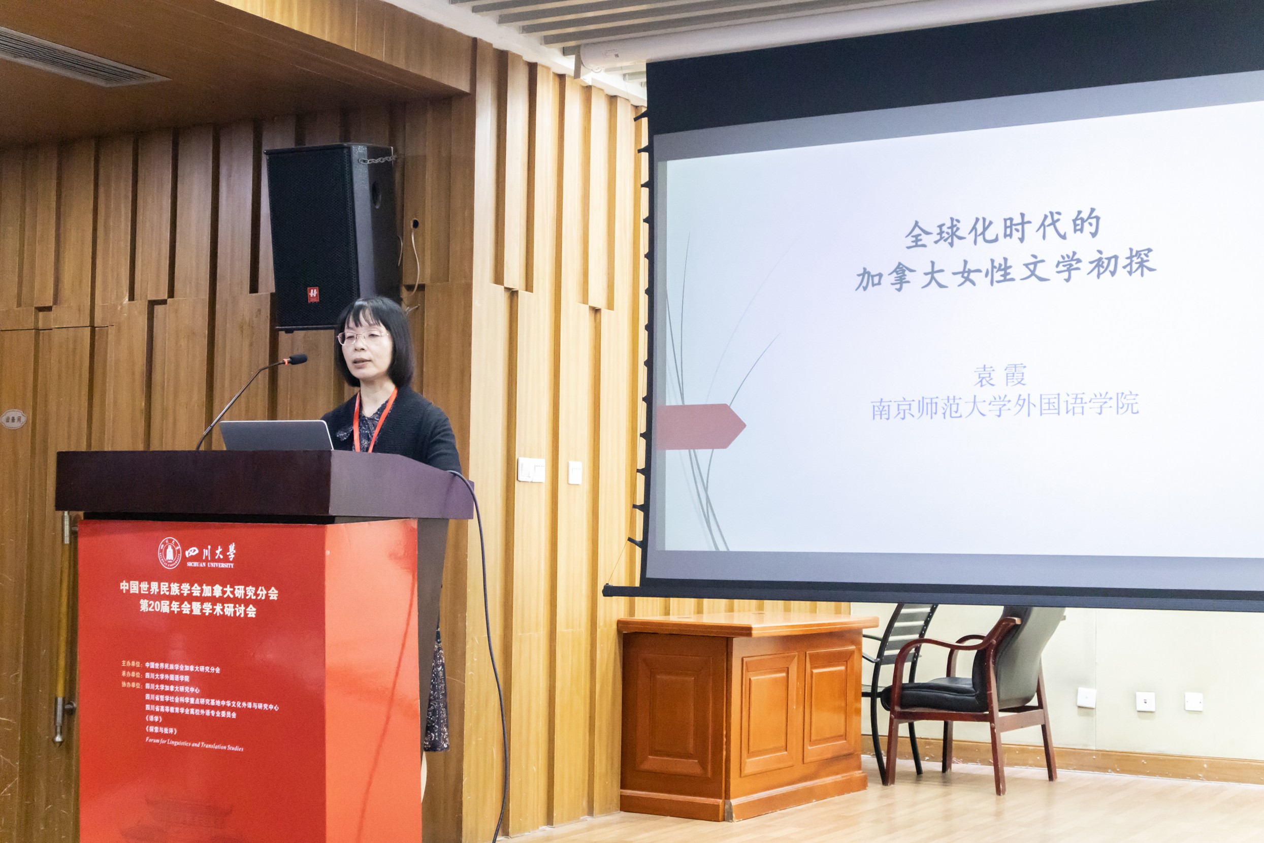 南京师范大学外国语学院袁霞教授的主旨报告题为“全球化时期的加拿大女性文学初探”。她在研究中指出全球化时代下,加拿大女性文学不仅融合后结构、后殖民、后现代与女性主义等多元交叉理论视角,同时更加关注“种族化”压迫体系。这一时期的女性研究从白人、中产阶级经验转向“有色人种妇女”和“显性少数族裔妇女”,不同族裔背景作家通过作品展现全球化时代身份的流动性与多重性,尝试揭示移民群体在加拿大政治经济和文化建设中的困境。