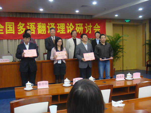 会议还对提交的论文进行了评奖和颁奖,我校翻译学博士生桑仲刚、蓝红军,澳门大学博士生欧阳倩华,以及商英学院张新红博士荣获一等奖。