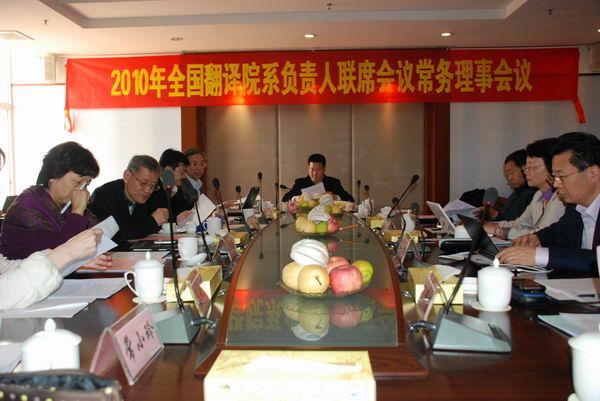 2010年1月18日,全国翻译院系负责人联席会议常务理事会工作会议在我校召开。会议由我校副校长仲伟合教授主持,翻译学院院长平洪教授、翻译学研究中心主任穆雷教授、MTI教育中心主任赵军峰教授出席。会上,代表们讨论了2010年的工作计划。
