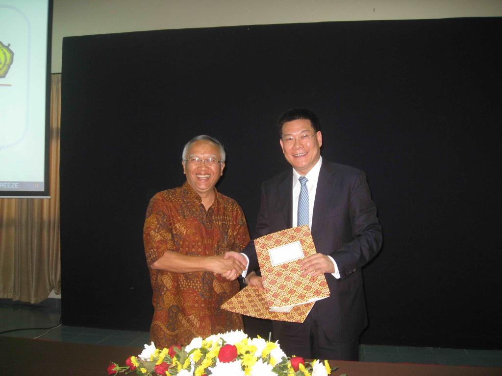11月11日上午,仲伟合会见了日惹国立大学校长罗玛特·瓦哈卜。仲伟合还与罗玛特·瓦哈卜共同签署了校际合作协议书。签约仪式后,仲伟合应邀发表了题为“经济全球化背景下的高等教育国际化”的主题演讲,受到了与会者的高度评价。该校校领导、职能部门负责人、学院院长及教授学者共50多人出席了演讲会。