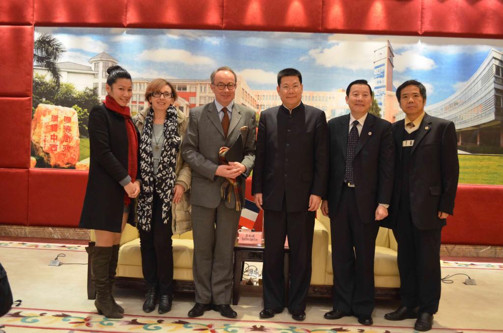 12月19日上午,法国驻广州总领事白屿淞(Bruno Bisson)在领事馆文化专员刘佩华(Pascale Vacher)等人的陪同下来访我校。我校校长仲伟合在行政楼贵宾厅会见来宾。陪同会见的有:副校长方凡泉、国际合作与交流处处长焦方太、西方语言文化学院院长郑立华、院长助理杨晓敏等。